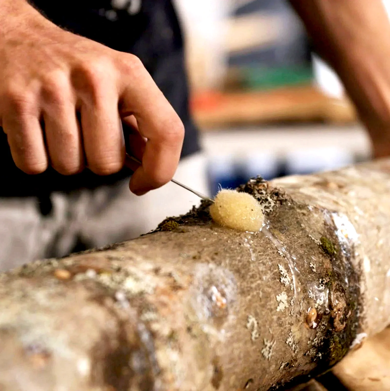 The process itself was fairly simple, though it did take time and a bit of care to ensure a successful harvest. We began with freshly cut logs, about 3–6 inches in diameter, choosing each species based on the specific mushrooms we wanted to grow—since different mushrooms prefer different trees. The logs were then cured for several weeks before being drilled and inoculated with mushroom spores. Finally, each hole was sealed with wax to lock in moisture and protect the logs from contaminants.